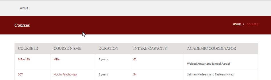 Screenshot showing  course section of the website, where details are visible after updation in content management system.